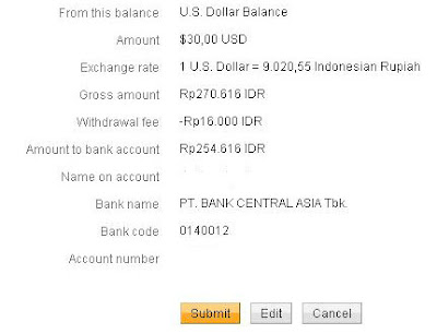3. Jika dana yang ingin ditransfer dibawah $150 (minimum jumlah transfer $10) akan dikenakan biaya sebesar RP.16.000,-